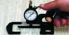 Warp Tension Meter. To determine correct tension for particular fabric qualities in weaving and preparation. Accurate and robust mechanical operation, dial readout 0-100 centesimal scale.